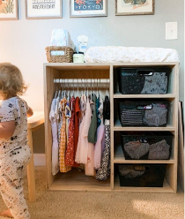 Armario fabricado en madera de pino, para uso infantil, con 4 divisiones para almacenar ropa, y una división para colgar, tal cual se encuentra en la foto, el producto no incluye ropa, ni decoraciones.