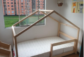 Base cama fabricada en madera de pino, para uso infantil, incluye media baranda tal cual se encuentra en la foto, el producto no incluye colchón ni decoraciones.