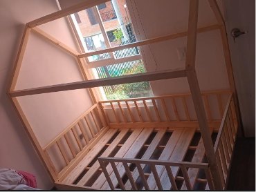 Base cama fabricada en madera de pino, para uso infantil, incluye barandas tal cual se encuentra en la foto, el producto NO incluye colchón ni decoraciones.